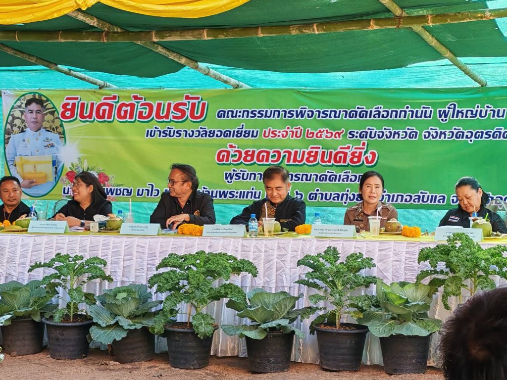 จังหวัดอุตรดิตถ์ – เมื่อวันที่ 28 มกราคม 2569 คณะกรรมการพิจารณาคัดเลือกกำนัน ผู้ใหญ่บ้าน เข้ารับรางวัลยอดเยี่ยมประจำปี 2569 ระดับจังหวัด ลงพื้นที่ตรวจประเมินเชิงประจักษ์ ณ บ้านพระแท่น หมู่ที่ 6 ตำบลทุ่งยั้ง อำเภอลับแล เพื่อพิจารณาผลงานของ นายสรรเพชญ มาไว ผู้ใหญ่บ้านหมู่ที่ 6 ในการคัดเลือกผู้เข้ารับรางวัลเกียรติยศ (แหนบทองคำ) ประจำปีนี้