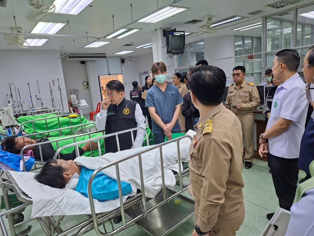 จากนั้นนายณัฐพงษ์ สงวนจิตร ผู้ว่าราชการจังหวัดสุพรรณบุรี พร้อมด้วยนายกลวัชร ทรัพย์ส่งสุข รองผู้ว่าราชการจังหวัดสุพรรณบุรีเดินทางมาเยี่ยมอาการและให้กำลังใจผู้บาดเจ็บจากเหตุการณ์พลุระเบิด 3 ราย ที่โรงพยาบาลดอนเจดีย์