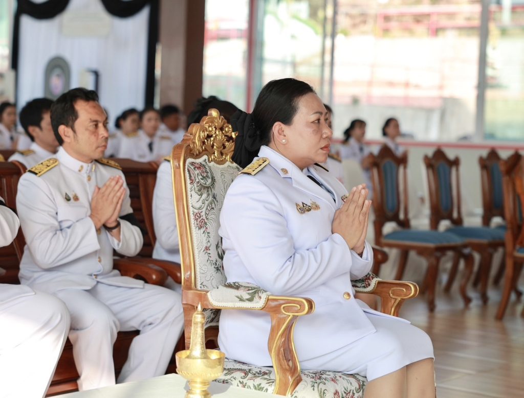 พิธี จุดธูปเทียนหน้ากระบะมุก พระสงฆ์สวดธรรมคาถา จำนวน 5 รูป ประธานในพิธีถวายเครื่อง