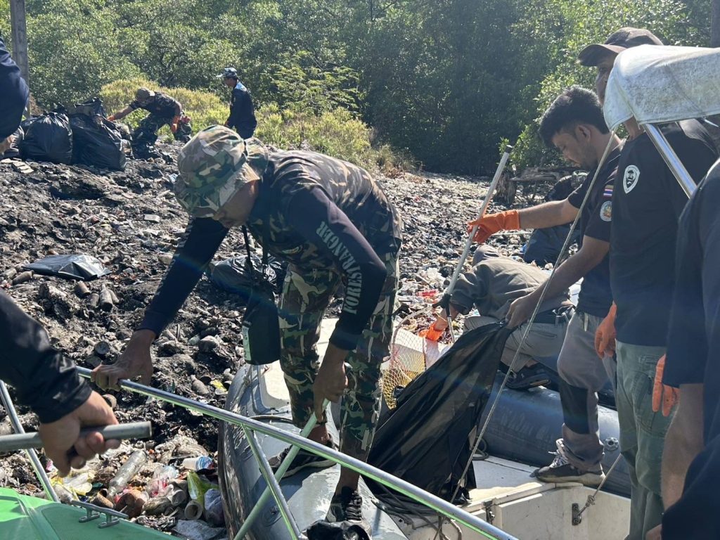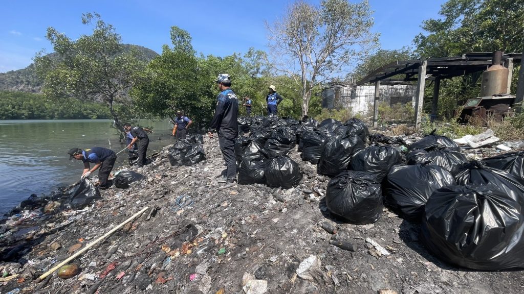 พังงา-หวั่นมลพิษลงทะเล อุทยานฯ อ่าวพังงา จับมือ สบทช.6 ลุยเก็บขยะตกค้างในจุดกำจัดขยะเกาะปันหยีกว่า1.2ตัน
