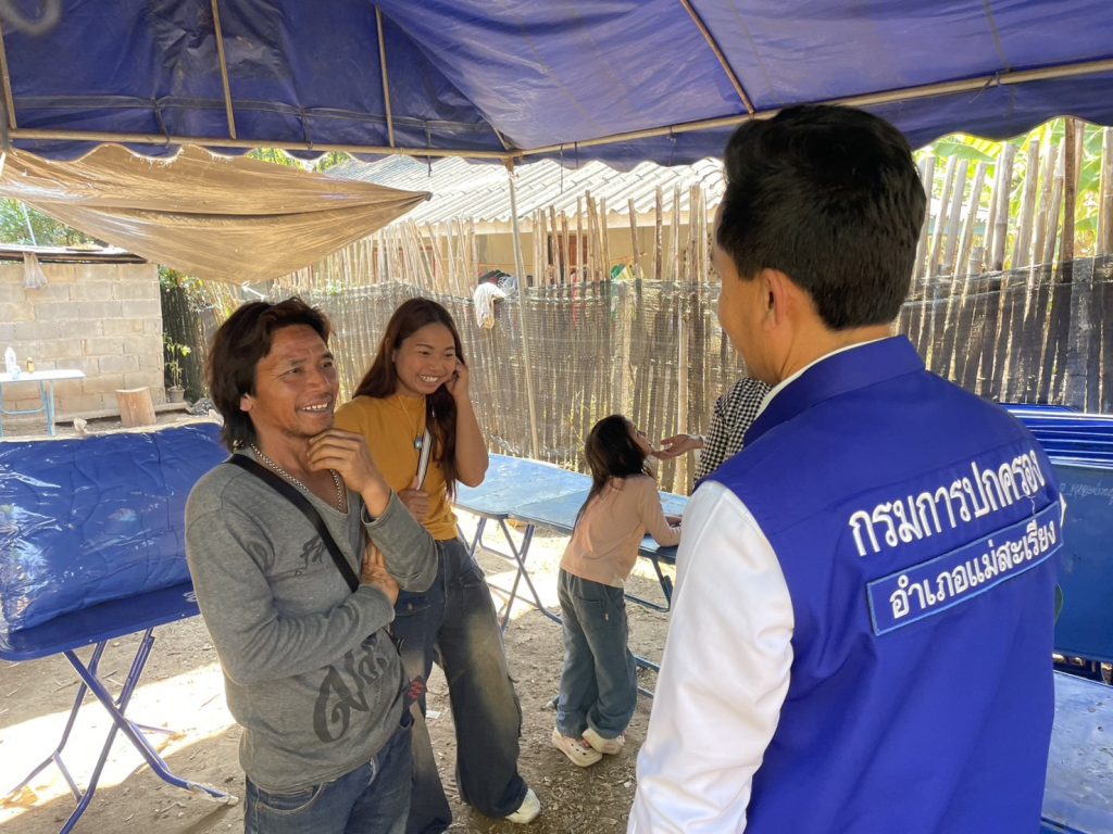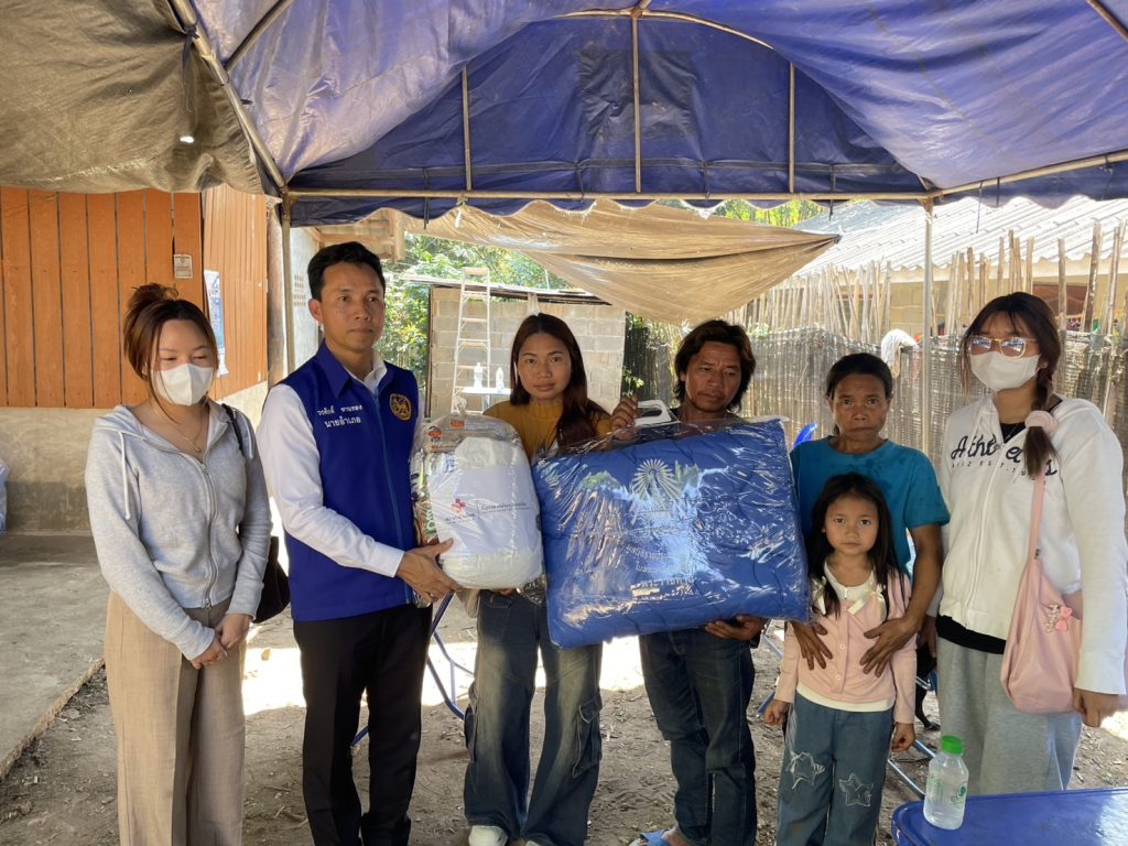 พร้อมกันนี้ นายอำเภอแม่สะเรียงได้มอบ ถุงยังชีพจากกิ่งกาชาดอำเภอแม่สะเรียง และ ผ้าห่มกันหนาวพระราชทานจากมูลนิธิราชประชานุเคราะห์ เพื่อเป็นการบรรเทาทุกข์และเป็นขวัญกำลังใจให้แก่ครอบครัวในเบื้องต้น