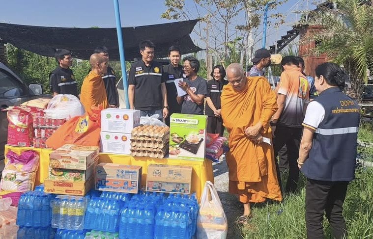 โดยมี พระธรรมวชิรเจติยาจารย์ ที่ปรึกษาเจ้าคณะภาค ๑๔ รักษาการเจ้าอาวาสวัด พระปฐมเจดีย์ฯ ประธานอำนวยการศูนย์ช่วยเหลือผู้ประสบภัยพิบัติคณะสงฆ์จังหวัดนครปฐม พระราชวชิรสุตาภรณ์ เจ้าคณะจังหวัดนครปฐม พระศรีวิสุทธิวงศ์ รองเจ้าคณะจังหวัดนครปฐม พระครูปุญญาภิสันท์ เจ้าคณะอำเภอบางเลน และ พระครูศรีสุตากร ทป.จจ.นฐ./ประธานมูลนิธิหลวงพ่อสมหวัง หน่วยบรรเทาสาธารณภัยมูลนิธิหลวงพ่อสมหวัง วัดกลางบางพระ และทางด้าน