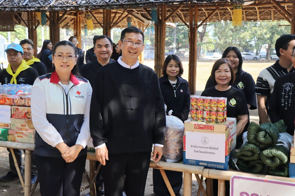 เมื่อวันที่ 5 กุมภาพันธ์ 2569 เวลา 10.30 น. ที่ ศาลาพอเพียง บริเวณหน้าศาลากลางหลังเก่าจังหวัดแม่ฮ่องสอน อำเภอเมือง จังหวัดแม่ฮ่องสอน นายวิบูรณ์ แววบัณฑิต ผู้ว่าราชการจังหวัดแม่ฮ่องสอน เป็นประธานในกิจกรรมบริจาคสิ่งของส่งกำลังใจให้แก่กำลังพลตาม โครงการ “1คน 1แรงใจ ให้ทหารชายแดน” โดยมี นางสุดารัตน์ แววบัณฑิต นายกเหล่ากาชาดจังหวัดแม่ฮ่องสอน/ประธานแม่บ้านมหาดไทยจังหวัดแม่ฮ่องสอน นายอุดมศักดิ์ ขาวหนูนา รองผู้ว่าราชการจังหวัดแม่ฮ่องสอน นายโชติ นรามณฑล ประธานชมรมผู้สื่อข่าวสื่อมวลชนจังหวัดแม่ฮ่องสอน /ประธานมูลนิธิบรรเทาสาธารณภัยจังหวัดแม่ฮ่องสอน หัวหน้าส่วนราชการจังหวัด มูลนิธิ/ชมรม ประชาชนผู้มีจิตศรัทธาในพื้นที่ร่วมกิจกรรม เพื่อร่วมสนับสนุนสิ่งของอุปโภค-บริโภค และสิ่งของจำเป็น เพื่อนำส่งสิ่งของสู่ชายแดนมอบให้แก่กำลังพลที่ปฏิบัติหน้าที่ตามแนวชายแดน