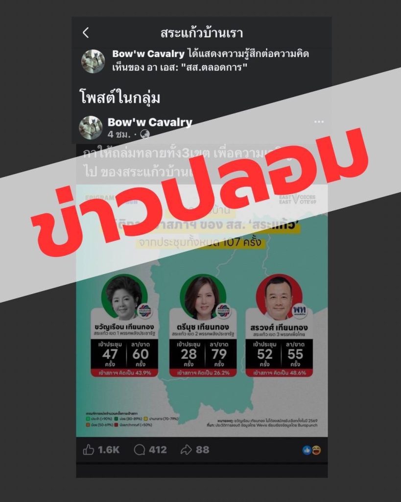 ข่าว.สรวงศ์ เทียนทอง (ส.บอย ) ผู้สมัคร ส.ส.เขต 3 สระแก้ว เพื่อไทย แจ้งความเอาผิดผู้สมัครเขต 1 เจ้าของเพจดัง ปมเผยแพร่ข้อมูลเท็จ