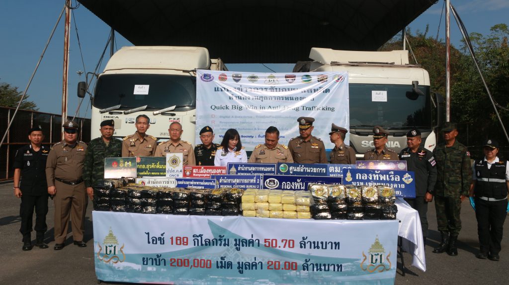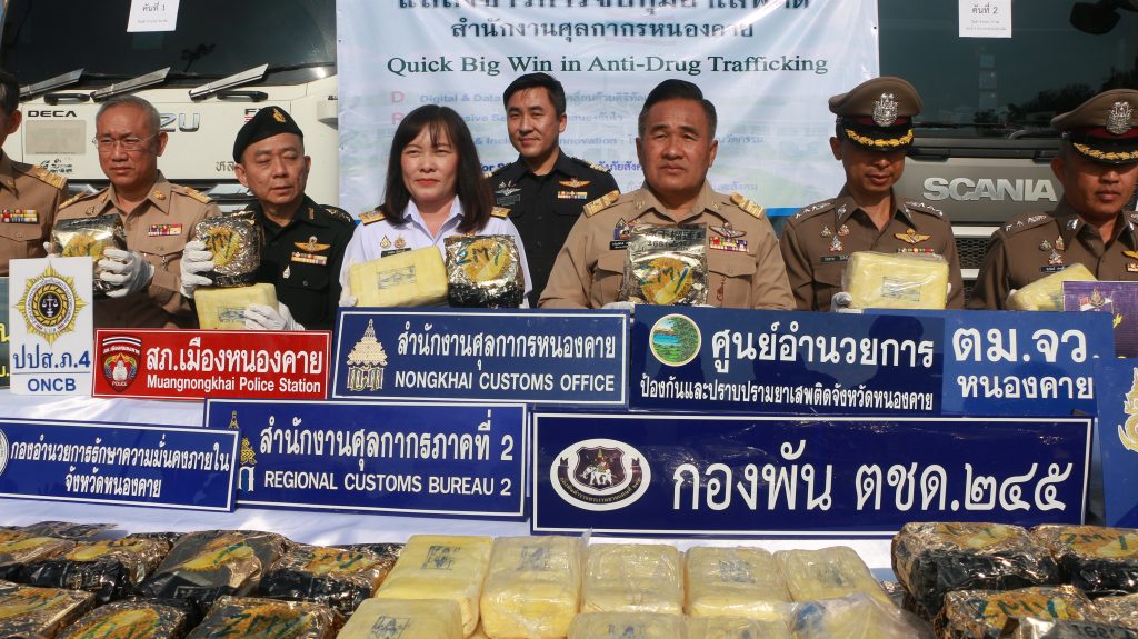ศุลกากรหนองคาย บูรณาการร่วมกับ บก.ควบคุมที่ 2 กกล.สุรศักดิ์มนตรี และหน่วยงานความมั่นคง จับกุม 2 หนุ่มใหญ่ชาวไทยคาด่าน ยึดยาบ้ากว่า 200,000 เม็ด ไอซ์ กว่า 169 กก.ซุกในรถพ่วงบรรทุก 18 ล้อ