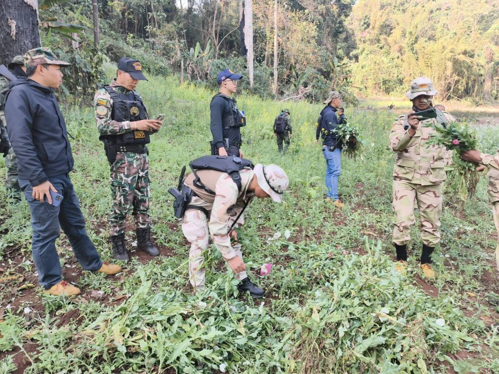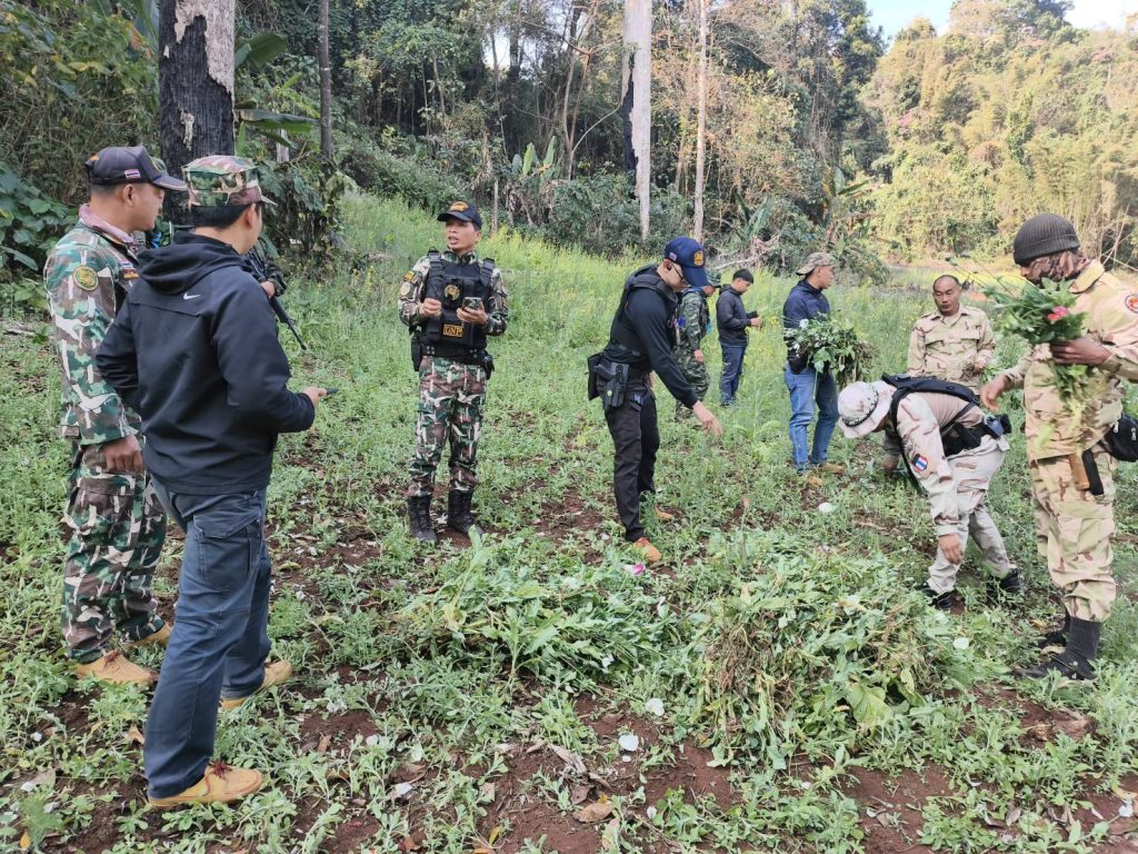 เมื่อวันที่ 11 กุมภาพันธ์ 2569 เวลา 11.30 น. นายวีระพงศ์ รัตนศรี นายอำเภอปางมะผ้า อ.ปางมะผ้า จ.แม่ฮ่องสอน ได้มอบหมายให้ นายเข็มก์ หงส์เจ็ด ปลัดอาวุโส อ.ปางมะผ้าฯ สนธิกำลังกับ ชุดสายตรวจเขตรักษาพันธุ์สัตว์ป่าลุ่มน้ำปายโดยนายไกรศร บัวบาน หัวหน้าชุด , เจ้าหน้าที่ตำรวจภูธรสภ.ปางมะผ้า และ เจ้าหน้าที่ทหาร ร้อย.ร.722 เข้าทำการตัดทำลายไร่ฝิ่น บริเวณพื้นที่การเกษตรระหว่าง บ้านหนองผาจ๊ำ – บ้านกึ๊ดสามสิบ หมู่ 4 ต.สบป่อง อ.ปางมะผ้า จ.แม่ฮ่องสอน โดยพบว่ามีการปลูกฝิ่นแซมในแปลงปลูกผักกาด คิดเป็นเนื้อที่ประมาณ 30 ตารางเมตร จึงได้ถอนตัดทำลายและเผาทิ้ง คิดเป็นน้ำหนักต้นฝิ่นประมาณ 3.20 กก.