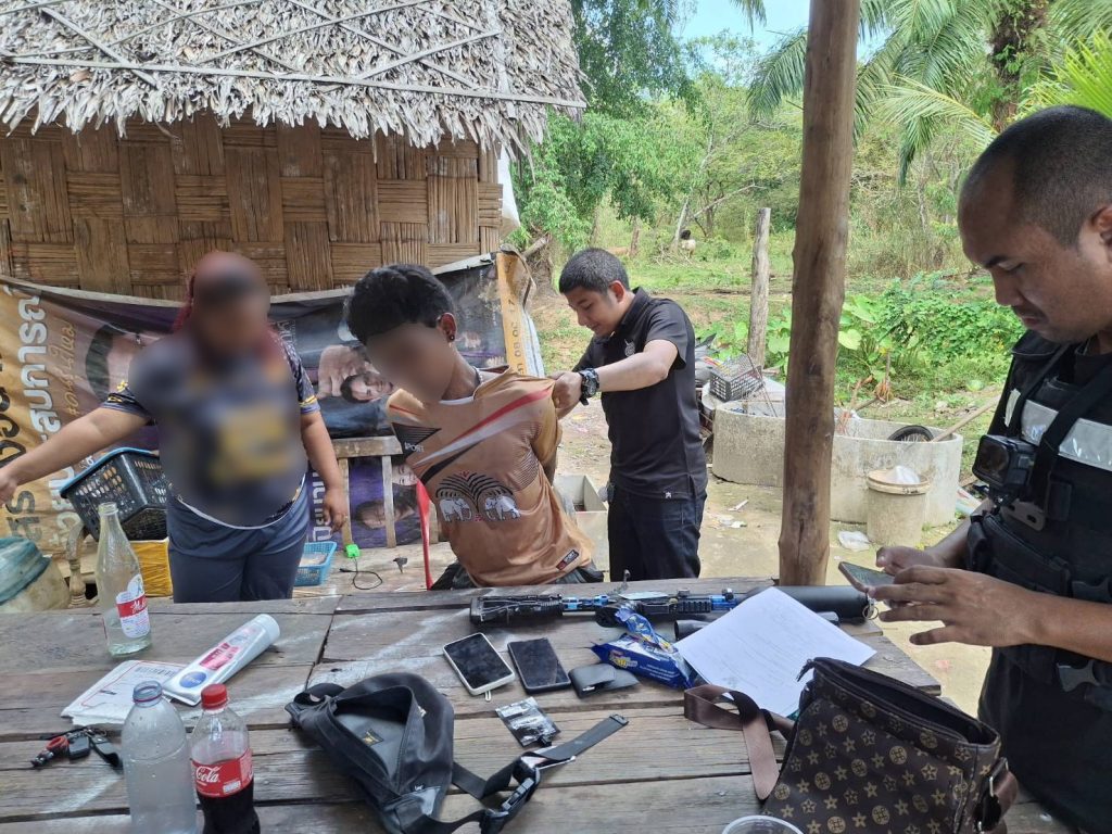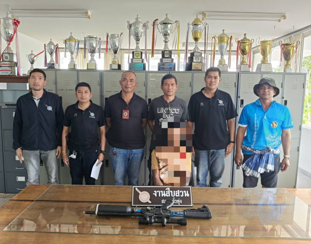 เมื่อวันที่ 18 กุมภาพันธ์ 2569 ภายใต้การอำนวยการสั่งการของ พ.ต.อ.ประกอบ บุญขวัญ ผกก.สภ.ตะกั่วทุ่ง พ.ต.ท.ภครพล ศรีสุข รอง ผกก.สส.ฯ พ.ต.ท.ปรีชา เพชรจุ้ย สว.สส.ฯ นำโดย ร.ต.ท.สมยศ ศรีทนนุกุล พร้อมด้วย นายเกรียงไกร ทองสม ผู้ใหญ่บ้าน ม.7 ต.กระโสม อ.ตะกั่วทุ่ง จ.พังงา นำเจ้าหน้าที่ตำรวจชุดสืบสวน สภ.ตะกั่วทุ่ง บุกเข้าจับกุมตัวนาย นายธวัชชัย ศรีชัย ผู้ต้องหาตามหมายจับศาลจังหวัดพังงาที่ 9/2568 ลงวันที่ 5 กุมภาพันธ์ 2569 ในความผิดฐานมีเมทแอมเฟตามีนไว้ในครอบครอง เสพเมทแอมเฟตามีน มีอาวุธปืนและเครื่องกระสุนปืนไว้ในครอบครองโดยไม่ได้รับอนุญาต ภายในสวนปาล์มน้ำมัน หลังบ้านหลังหนึ่ง ม.12 ต.กะไหล อ.ตะกั่วทุ่ง จ.พังงา พร้อมด้วยอาวุธปืนยาวประกอบขึ้นเอง 1 กระบอก เครื่องกระสุนปืน ขนาด .22 จำนวน 1 นัด ลำกล้องเล็งติดอาวุธปืนยาว จำนวน 1 ชิ้น และโทรศัพท์มือถือ 1 เครื่อง แจ้งข้อกล่าวหามีอาวุธปืนและเครื่องกระสุนปืนไว้ในครอบครองโดยไม่ได้รับอนุญาต พาอาวุธปืนติดตัวไปในเมือง หมู่บ้าน หรือทางสาธารณะโดยไม่ได้รับอนุญาต พาอาวุธปืนติดตัวไปในเมือง หมู่บ้าน หรือทางสาธารณะโดยไม่ได้รับอนุญาตและโดยไม่มีเหตุสมควร และลักลอบเล่นการพนันออนไลน์(เกมส์สล็อต)พนันเอาทรัพย์สินกันโดยไม่ได้รับอนุญาต