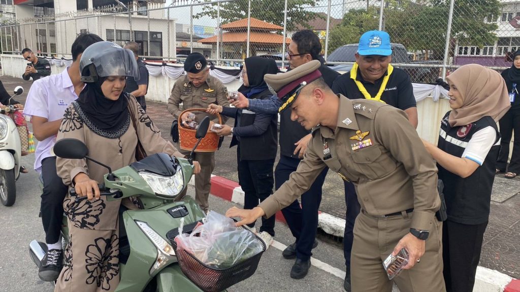 วันที่ 19 กุมภาพันธ์ 2569 (วันแรกของเดือนรอมฎอน ฮ.ศ. 1447) บริเวณหน้าสถานีตำรวจภูธรเมืองนราธิวาส ถ.สุริยะประดิษฐ์ บรรยากาศเต็มไปด้วยความอบอุ่น เมื่อ พ.ต.อ.ปรัชญา ไบเตะ ผกก.สภ.เมืองนราธิวาส พร้อมด้วยข้าราชการตำรวจและคณะกรรมการ กต.ตร. ร่วมกันจัดกิจกรรมเซอร์ไพรส์ผู้ใช้รถใช้ถนน ด้วยการมอบกล่องอินทผาลัมจำนวน 1,447 กล่อง (ตามปีฮิจเราะห์ศักราช) ให้กับประชาชนทั้งชาวไทยมุสลิมและไทยพุทธที่สัญจรไปมา