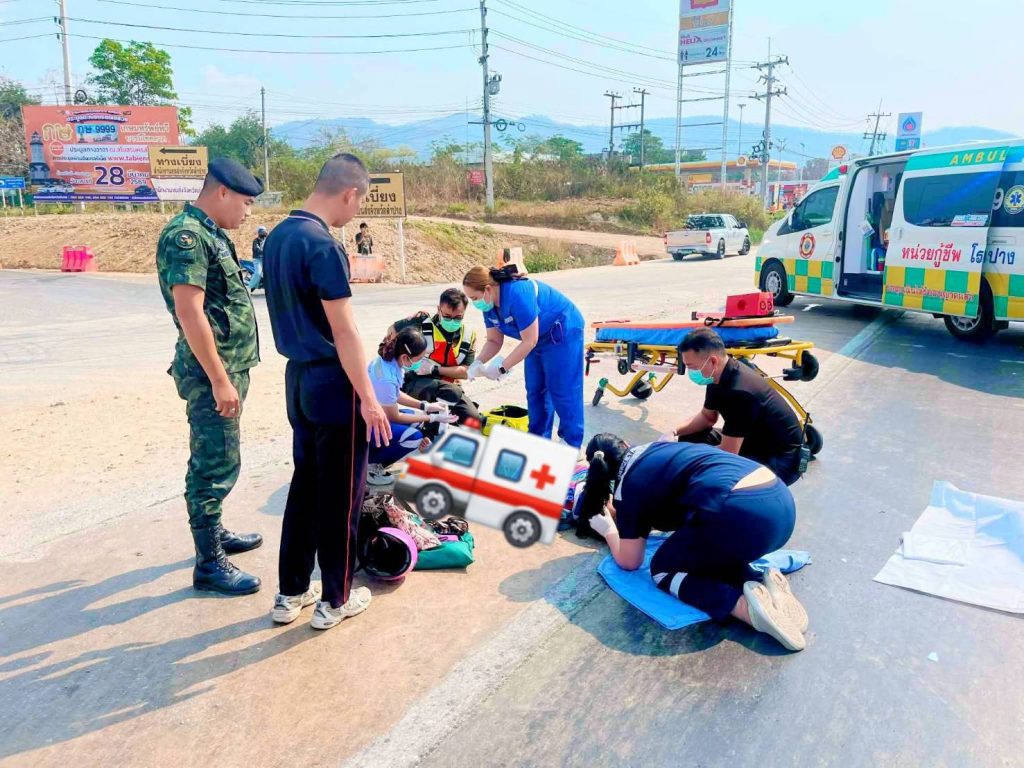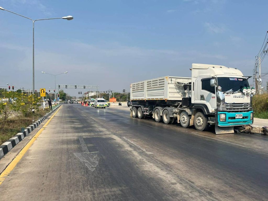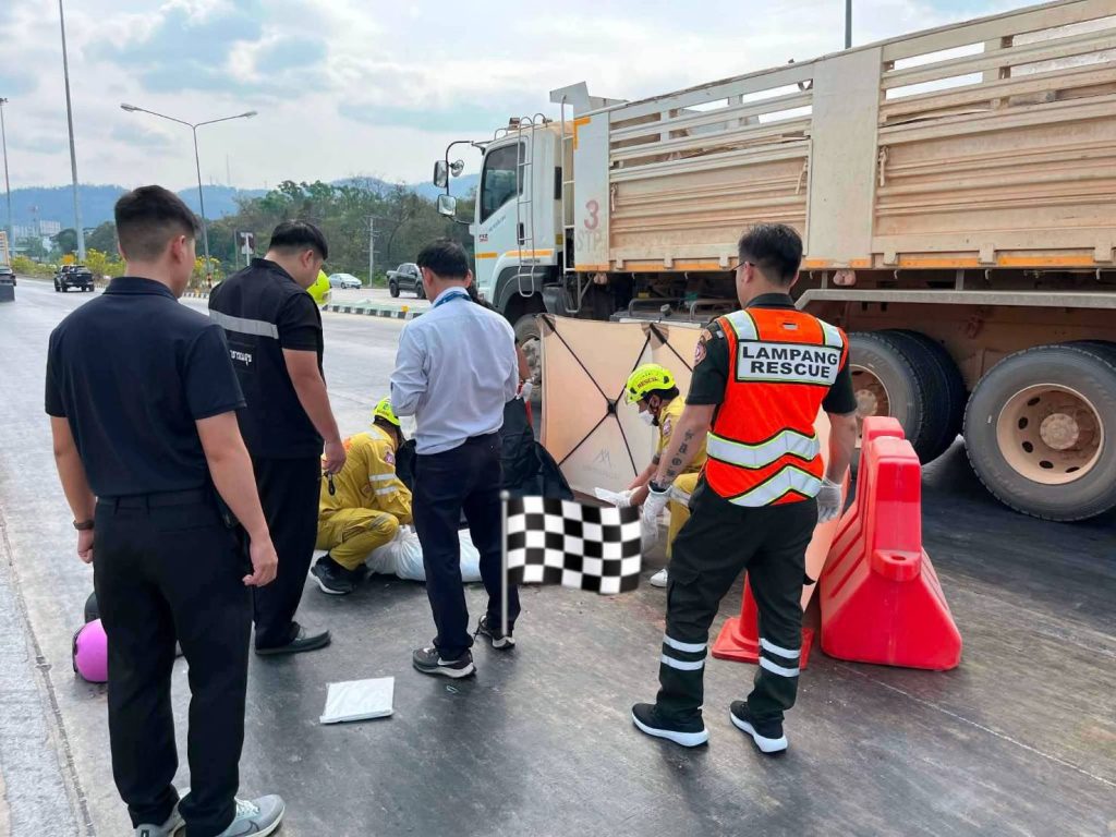เมื่อเวลา 10.22 น. วันที่ 20 ก.พ. 2569 ที่ จ.ลำปาง ผู้สื่อข่าวรายงานว่า ตำรวจ สภ.เมืองลำปาง ได้รับแจ้งเกิดอุบัติเหตุรถบรรทุกพ่วงเฉี่ยวชนกับรถจักรยานยนต์มีผู้บาดเจ็บและเสียชีวิตบริเวณสี่แยกขนส่งลำปาง ถนนวชิราวุธดำเนิน อ.เมืองลำปาง ก่อนถึงศาลากลางจังหวัดลำปาง จึงแจ้งประสานเจ้าหน้าที่สมาคมกู้ภัยลำปาง กู้ชีพ รพ. ลำปาง และแพทย์เวร รพ.ลำปาง พร้อมตำรวจชุดสายตรวจ ต.พระบาทรุดไปตรวจสอบ