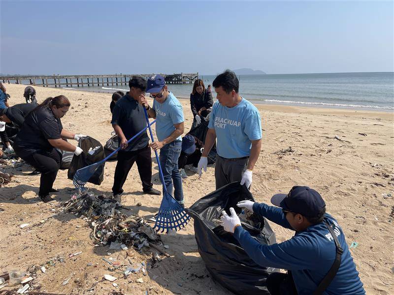 “ท่าเรือประจวบ-ทรภ.1 นำทีมชุมชนบ้านหนองเสม็ด เก็บขยะชายหาด