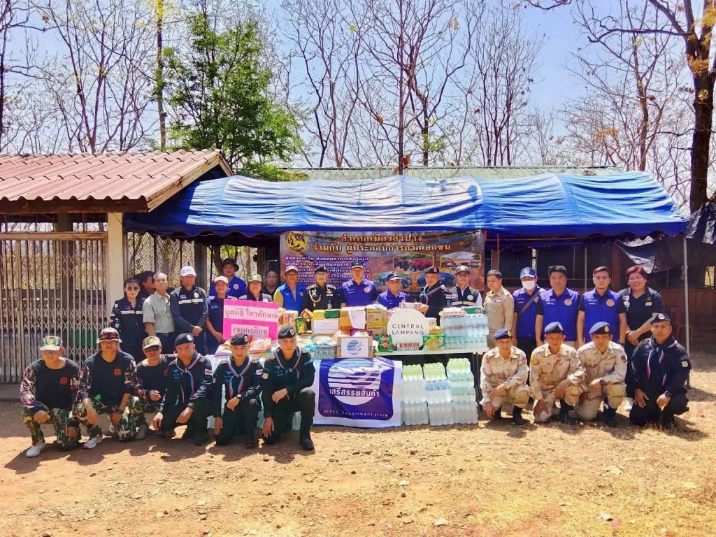 และได้ร่วมกันมอบน้ำดื่ม อาหารแห้ง สิ่งของอุปโภค-บริโภคที่จำเป็น พร้อมกล่าวขอบคุณและชื่นชมความเสียสละของกำลังพลทุกนาย ที่เป็นปราการสำคัญในการปกป้องทรัพยากรธรรมชาติ และช่วยบรรเทาวิกฤตฝุ่นPM2.5 เพื่อสุขภาพอนามัยของชาวลำปางต่อไป