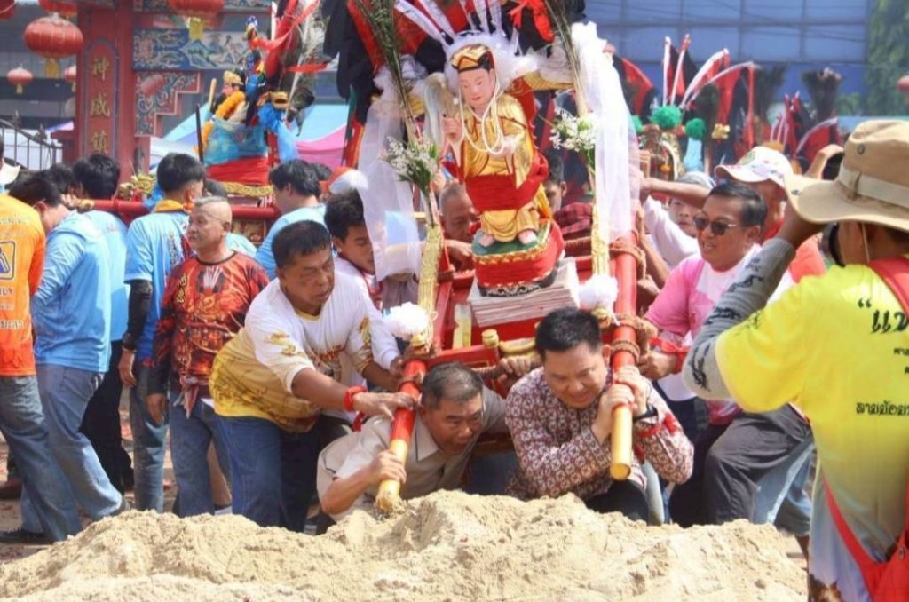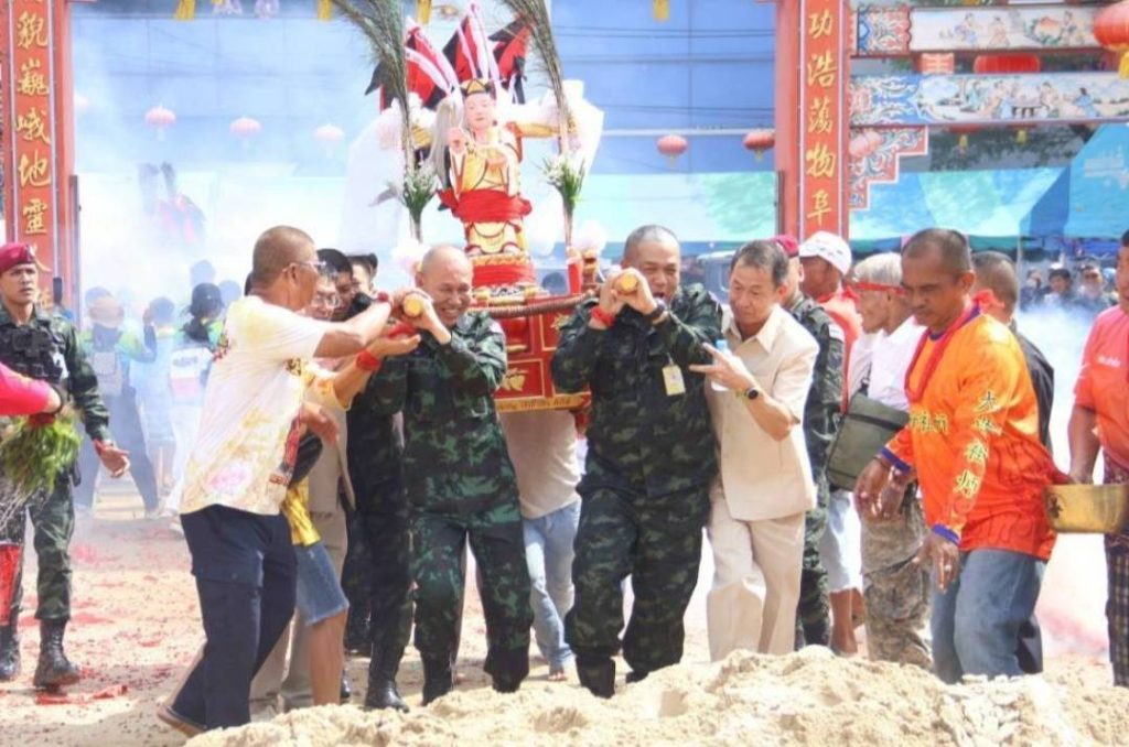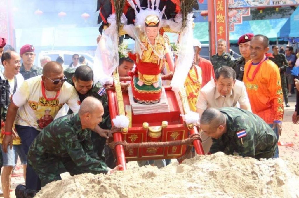 รองแม่ทัพภาคที่ 4 ร่วมพิธีอัญเชิญองค์พระจำลอง ประทับเกี้ยวหามพระ งานประเพณีแห่พระลุยไฟ (แม่กอเหนี่ยวยะลา) ประจำปี 2569