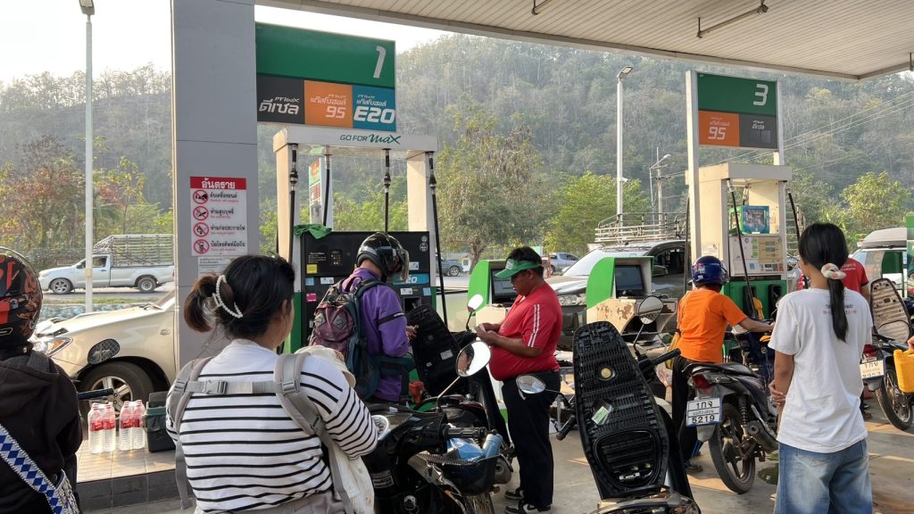 ชาวแม่ฮ่องสอน ตระหนกหลังมีกระแสข่าวน้ำมันหมดปั้ม ปตท. พากันแห่ออกมาซื้อน้ำมันเชื้อเพลิงเพื่อตุนยามขาดแคลน ส่งผลให้น้ำมันเชื้อเพลิงขาดตลาด