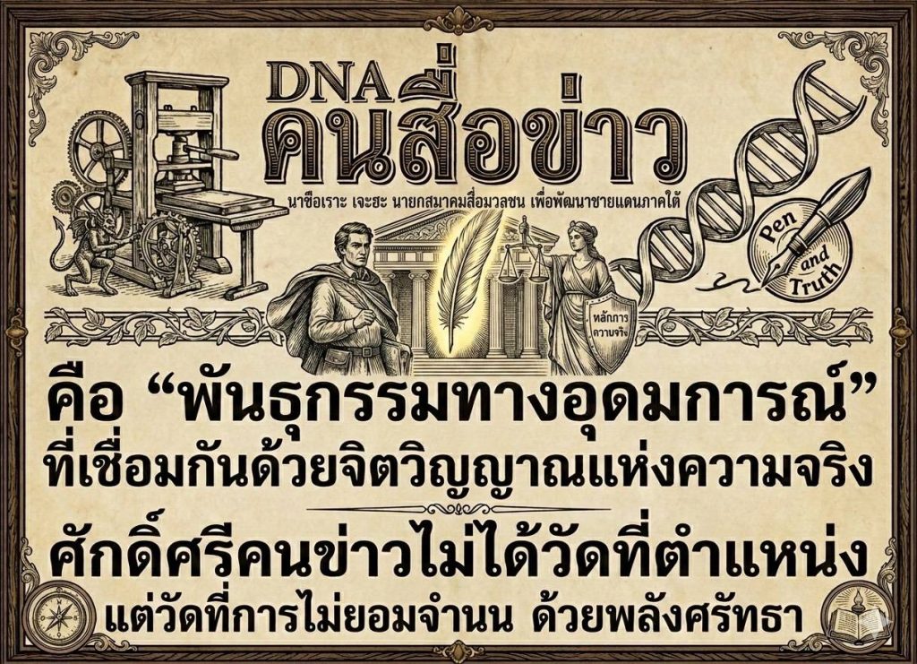สมาคมสื่อมวลชนเพื่อพัฒนาชายแดนภาคใต้ JSD-South ขอยืนยัน “อุดมการณ์” คนสื่อข่าว….. คือ “พันธุกรรมทางอุดมการณ์” ที่เชื่อมกันด้วยจิตวิญญาณแห่งความจริง”