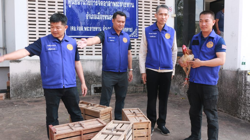 ปกครองเมืองหนองคาย บุกทลายบ่อนไก่ชน สนามซ้อมคัดไก่ชน ศ.คำกอง รวบนักพนัน 18 ราย ไม่มีใครแสดงตัวเป็นเจ้าของ