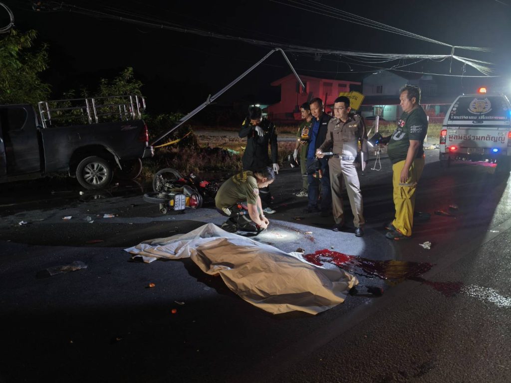 นครปฐม-กระบะประสานงารถจยย.2คันดับสยอง 2 ศพ สาหัส 1