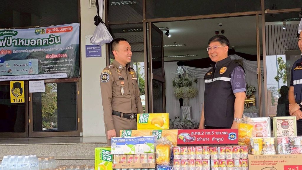 ลำปาง-ตร.ทล.ลำปาง ร่วมมอบข้าวสาร อาหารกึ่งสำเร็จรูป น้ำดื่ม เพื่อสนับสนุนการปฏิบัติงานของศูนย์รับแจ้งเหตุไฟป่า หมอกควัน