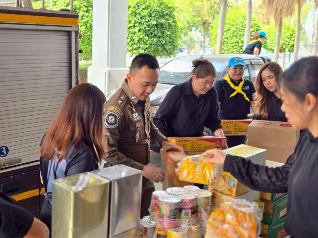 เมื่อวันที่ 10 มี.ค.2569 ที่ จ.ลำปาง ผู้สื่อข่าวรายงานว่า พ.ต.ท.เกียรติพร สวัสดิเทพ สารวัตรสถานีตำรวจทางหลวง 2 กองกำกับการ 5 กองบังคับการตำรวจทางหลวง พร้อมกำลังจิตอาสาตำรวจทางหลวงลำปาง ร่วมมอบข้าวสาร อาหารกึ่งสำเร็จรูป น้ำดื่ม เพื่อสนับสนุนการปฏิบัติงานของศูนย์รับแจ้งเหตุไฟป่า หมอกควันและฝุ่น PM2.5 จ.ลำปาง และนายธนภัทร ชัยประภานนท์ เจ้าของ หจก.บิ๊กบอส โซลูชั่น และร้านอาหารเทสดี ลำปาง มอบน้ำดื่ม