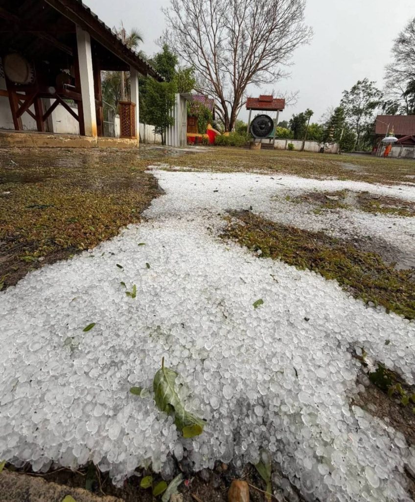 ที่ อ.งาว เกิดภูายุฝนฟ้าคะนองและมีลูกเห็บหลายพื้นที่