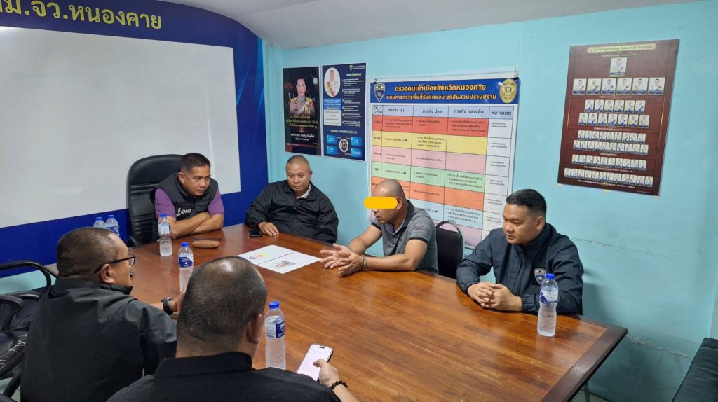 วันที่ 13 มี.ค.69 เวลา 13.30 น. พล.ต.ต.โชติวัฒน์ เหลืองวิลัย ผบก.สส.บช.น., พล.ต.ต.เกียรติกุล สนธิเณร ผบก.น.2, พ.ต.อ.ศักดิ์สิทธิ์ บุญเสริม ผกก.สส.ภ.จว.หนองคาย,ภายใต้การอำนวยการของ พล.ต.ต.ไพรัช พุกเจริญ ผบก.ตม.4, พ.ต.อ.นพดล รักชาติ ผกก.ตม.จว.หนองคาย, พ.ต.ท.ธียาฌพัตท์ รังสิพราหมณกุล รอง ผกก.ตม.จว.หนองคาย,พ.ต.ท.อภิชาติ คลธา สว.ตม.หนองคาย พร้อมเจ้าหน้าที่ตำรวจตรวจคนเข้าเมืองหนองคาย ได้ร่วมกันเดินทางจากด่านพรมแดนสะพานมิตรภาพไทย – ลาว แห่งที่ 1 อ.เมืองหนองคาย ไปยังด่านพรมแดนสะพานมิตรภาพลาว – ไทย แห่งที่ 1 เวียงจันทน์ สปป.ลาว ทำการรับมอบตัว ว่าที่ร้อยตรีภูเมธ เงินศรีชัย หรือ อาร์ท อายุ 48 ปี จากเจ้าหน้าที่ฝ่ายความมั่นของนครหลวงเวียงจันทน์ สปป.ลาว ซึ่งว่าที่ร้อยตรีภูเมธ เป็นผู้ต้องหาตามหมายจับ ศาลอาญาที่ 1416/2569 ลงวันที่ 10 มี.ค.2569 ข้อหา “เป็นผู้ใช้ให้ผู้อื่นกระทำความผิดและร่วมกันกระทำความผิดฐานฆ่าผู้อื่นโดยไตร่ตรองไว้ก่อน, ไม่มีเหตุอันสมควรทำให้เสียหาย เคลื่อนย้าย ทำลายทำให้เสื่อมค่าหรือทำให้ไร้ประโยชน์ซึ่งศพส่วนของศพ, ลอบฝัง ซ่อนเร้น ย้ายหรือทำลายศพ ส่วนของศพเพื่อปิดบังการเกิด การตายหรือเหตุแห่งการตาย, อั่งยี่ ซ่องโจร, ข่มขืนใจผู้อื่นให้กระทำการใด ไม่กระทำการใดหรือจำยอมต่อสิ่งใดโดยทำให้กลัวว่าจะเกิดอันตรายต่อชีวิต ร่างกาย เสรีภาพชื่อเสียงหรือทรัพย์สินของผู้ถูกข่มขืนใจนั้นเองหรือของผู้อื่น หรือโดยใช้กำลังประทุษร้ายจนผู้ถูกข่มขืนใจต้องกระทำการนั้นไม่กระทำการนั้นหรือจำยอมต่อสิ่งนั้น โดยร่วมกระทำความผิดด้วยกันตั้งแต่ห้าคนขึ้นไป, หน่วงเหนี่ยวหรือกักขังผู้อื่นหรือกระทำด้วยประการใดให้ผู้อื่นปราศจากเสรีภาพในร่างกาย,ปล้นทรัพย์เป็นเหตุให้ผู้อื่นถึงแก่ความตายโดยใช้ยานพาหนะเพื่อกระทำผิดหรือพาทรัพย์นั้นไปหรือเพื่อให้พ้นจากการจับกุม”#ข่าว ตม.หนองคาย #สืบ ภจว.หนองคาย#มนเดช#พ่อตู้ลภ