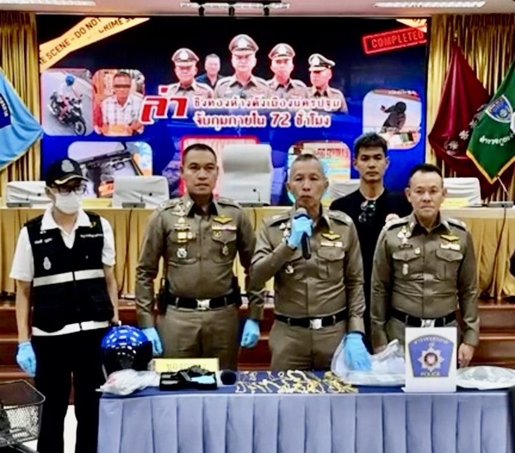 นครปฐม-รวบแล้วโจรควงปืนชิงทองห้างดังนครปฐม ได้ของกลางคืนครบ 23 เส้น