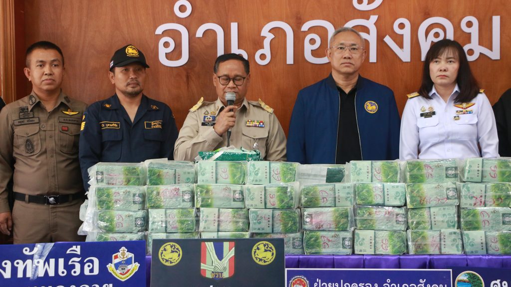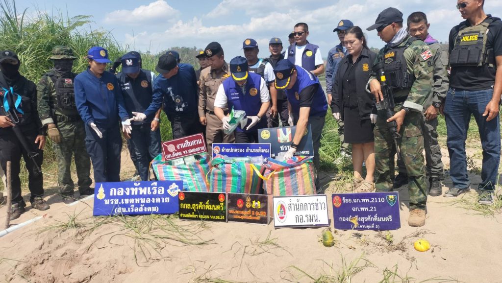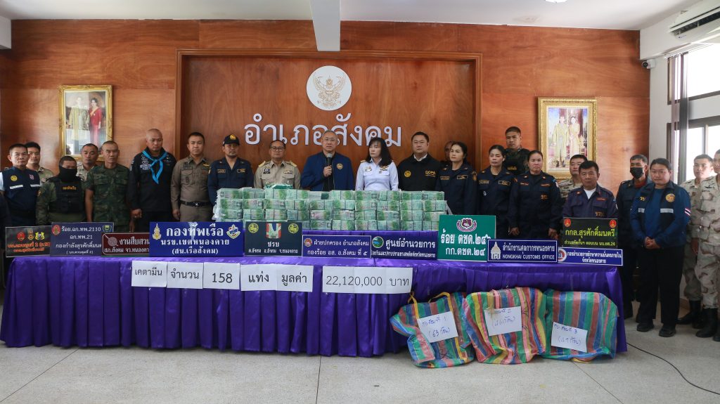 จังหวัดหนองคาย:ยาเสพติดทะลักชายแดนไม่หยุด ล่าสุดฝ่ายปกครองอำเภอสังคม ตรวจยึดยาเคตามีน 158 กก.มูลค่ากว่า 22 ล้านบาท ซุกในพงหญ้าริมโขง