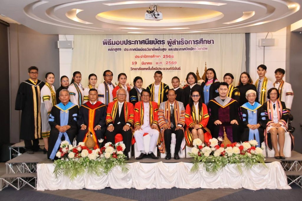 วันนี้ (19 มีนาคม 2569) เวลา 09.00 น. ที่โรงแรมแอทที บูทีค ตำบลคลองวาฬ อำเภอเมือง จังหวัดประจวบคีรีขันธ์ นายสิทธิชัย สวัสดิ์แสน ผู้ว่าราชการจังหวัดประจวบคีรีขันธ์ เป็นประธานในพิธีมอบประกาศนียบัตรแก่ผู้สำเร็จการศึกษาของวิทยาลัยเทคโนโลยีประจวบคีรีขันธ์ประจำปีการศึกษา