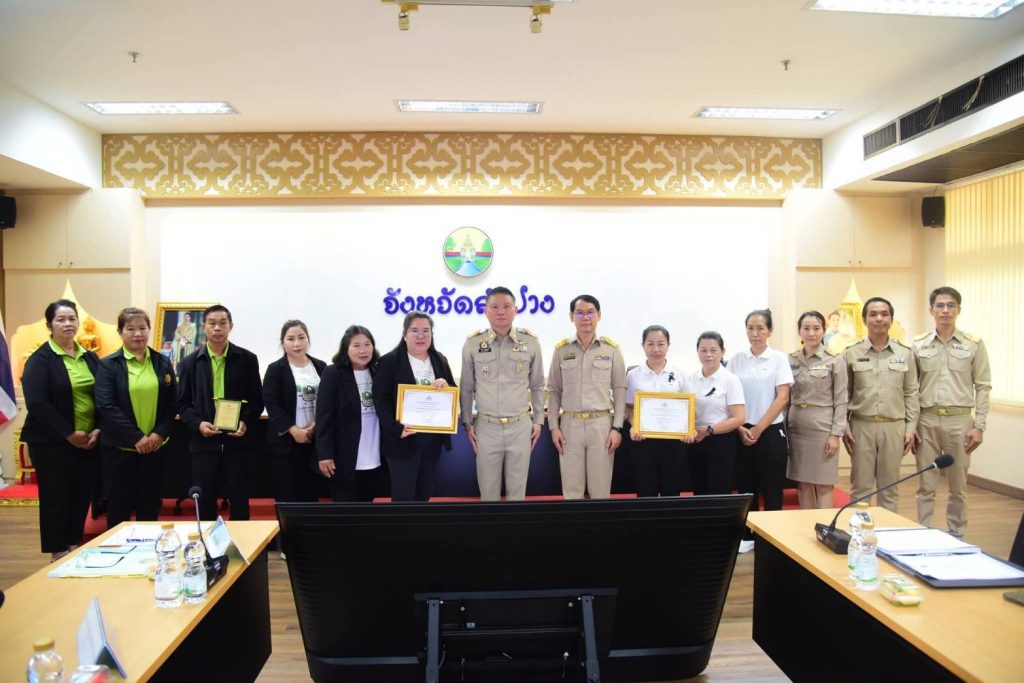 โดยที่ประชุม ผวจ.ลำปางได้มอบเกียรติบัตรให้แก่ หจก.ธวัชแมชชีนเทค จ.ลำพูน ที่ให้การสนับสนุนหน้ากากอนามัยป้องกันฝุ่น(PM2.5) 200,000 ชิ้น มอบใบประกาศและโล่รางวัเกียรติคุณ โครงการฯหมู่บ้าน “แผ่นดินธรรม แผ่นดินทอง”(หมู่บ้าน อยู่เย็น)ปี 2568 มอบโล่รางวัลโครงการ”เด็กไทยหัวใจสร้างสรรค์” 6 ราย มอบประกาศเกียรติคุณสหกรณ์ดีเด่นระดับภาคปี 2569 อีก 1 รางวัล มอบโล่รางวัลและประกาศเกียรติคุณการประกวดวิสาหกิจชุมชนดีเด่นระดับจังหวัดปี 2569 จำนวน 3 รางวัล มอบโล่รางวัลและประกาศเกียรติคุณให้กับอำเภอผู้มาใช้สิทธิเลือกตั้งสูงสุด 3 รางวัลและอำเภอที่มีบัตรเสียน้อยที่สุด3รางวัล