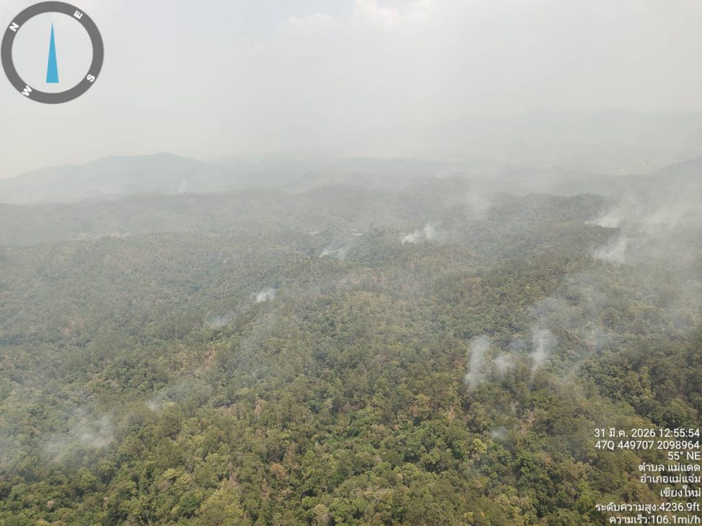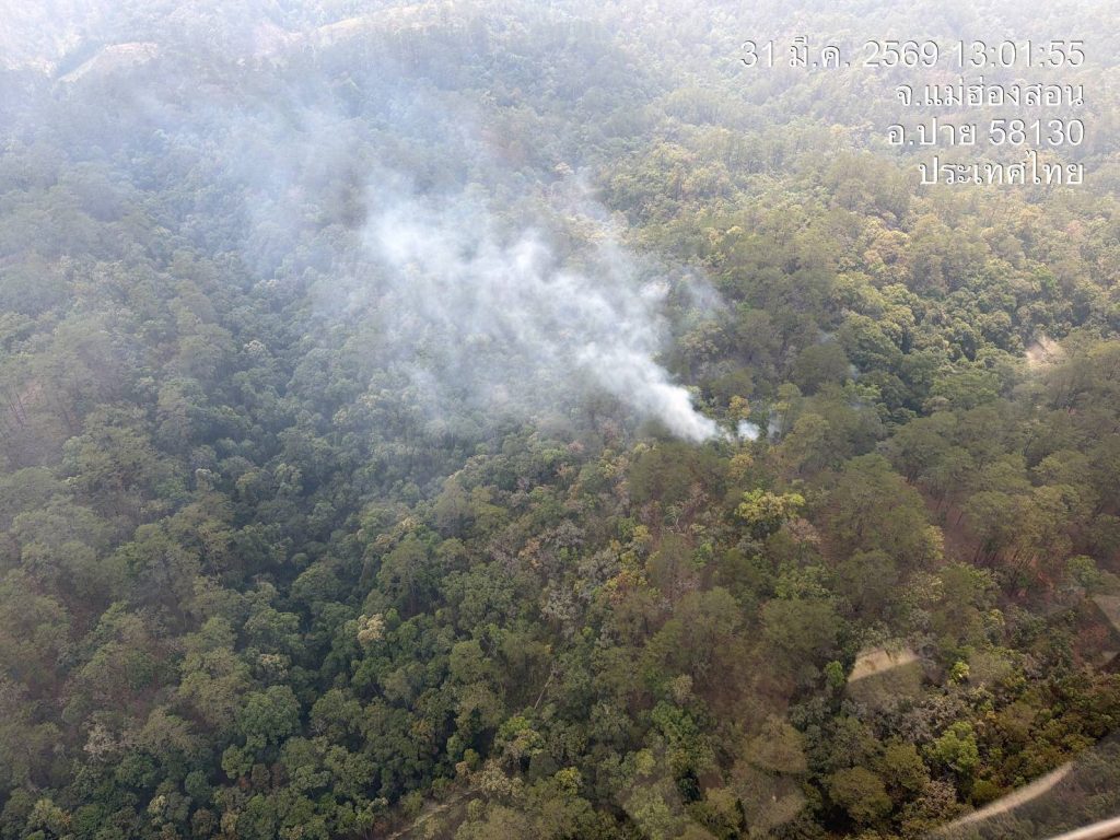 เมื่อวันที่ 31 มีนาคม 2569 เวลา 14.00 น.ศูนย์ปฏิบัติการควบคุมไฟป่าและหมอกควันแม่ฮ่องสอน ร่วมกับ ชุดอากาศยานกระทรวงทรัพยากรธรรมชาติและสิ่งแวดล้อมได้ร่วมประชุมหารือและสนับสนุนปฏิบัติการดับไฟป่าในพื้นที่จังหวัดแม่ฮ่องสอน โดยมีเป้าหมายในการดับไฟป่าในพื้นที่ อ.ปาย และ อ.เมืองแม่ฮ่องสอน โดยใช้เฮลิคอปเตอร์ ฮ.ทส. จำนวน 2 ลำ หมายเลข 5119 และ หมายเลข 5120 ในการตักน้ำบินไปดับไฟป่า ผลการปฏิบัติได้มีการตักน้ำไปดับไฟป่า ในพื้นที่ อ.ปาย จำนวนทั้งสิ้น 28 เที่ยว ปริมาณน้ำ 14,000 ลิตร ( ฮ.ทส.5119 จำนวน 18 เที่ยว / ฮ.ทส.5120 จำนวน 10 เที่ยว) สามารถดับและควบคุมไฟป่าได้บางส่วน บินสนับสนุนทิ้งน้ำดับไฟป่าพื้นที่ป่าอำเภอเมืองแม่ฮ่องสอน รวมทั้งสิ้น 8 เที่ยว ปริมาณน้ำ 4,000 ลิตร ( ฮ.ทส.5119 จำนวน 8 เที่ยว) สามารถดับและควบคุมไฟป่าได้บางส่วน โดยเสร็จภารกิจเวลาประมาณ 17.30 น.