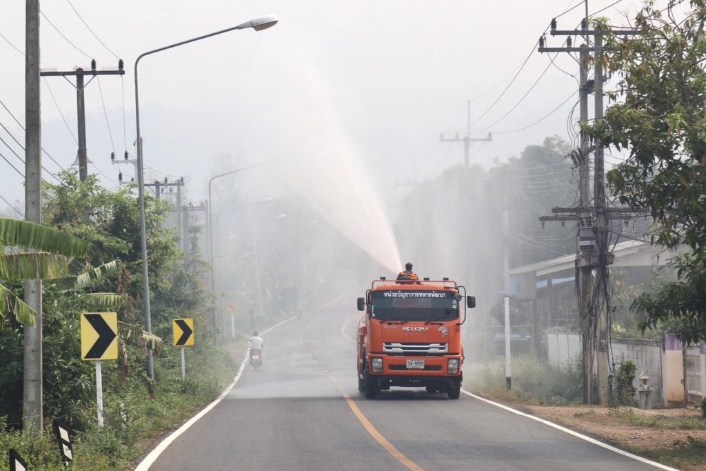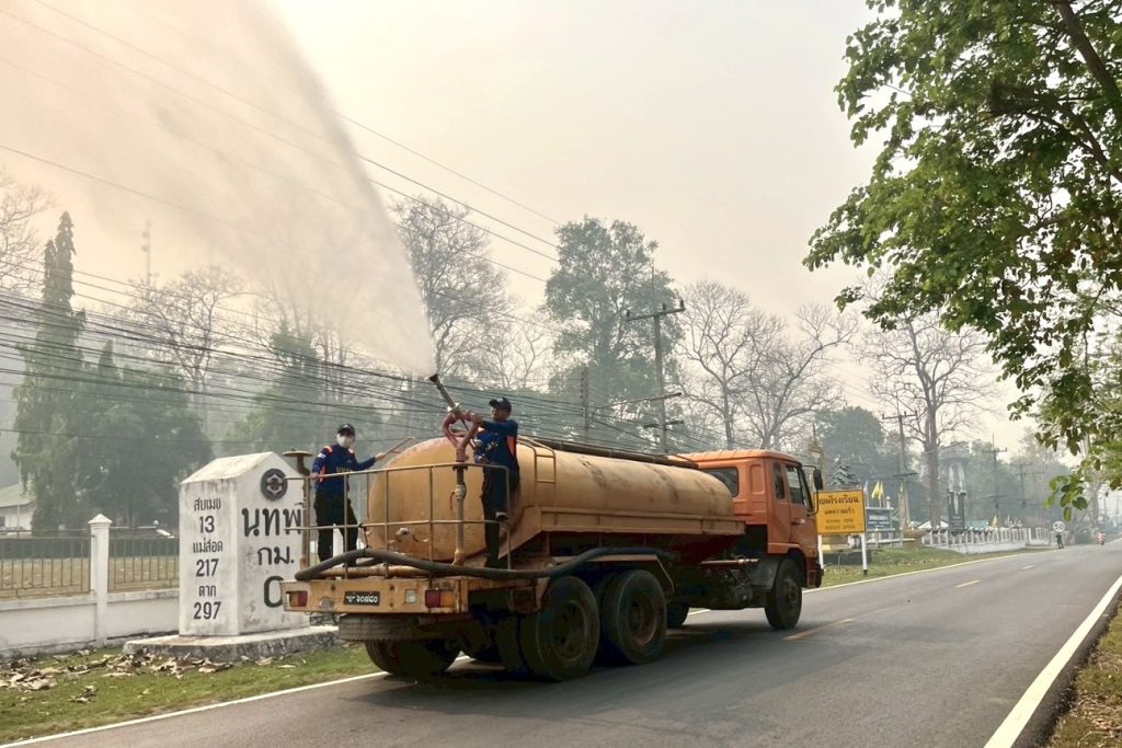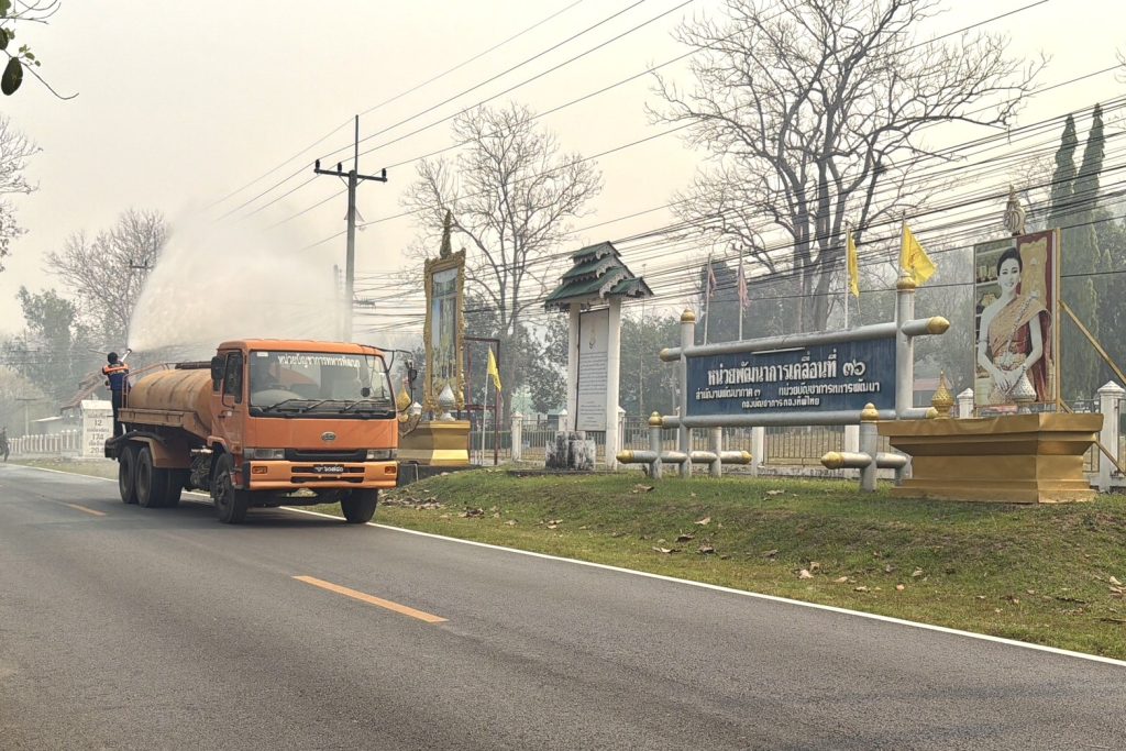 ทหารพัฒนา บก.ทท. (นทพ.) โดย นพค.36 สนภ.3 นทพ.ส่งรถบรรทุกน้ำขนาดบรรจุ 9000 ลิตร พร้อมกำลังพล ฉีดพ่นน้ำถนน 105 สลายควันไฟป่า หลังPM 2.5 พุ่งเกินค่ามาตรฐาน เพื่อบรรเทาความเดือดร้อนชาวบ้าน