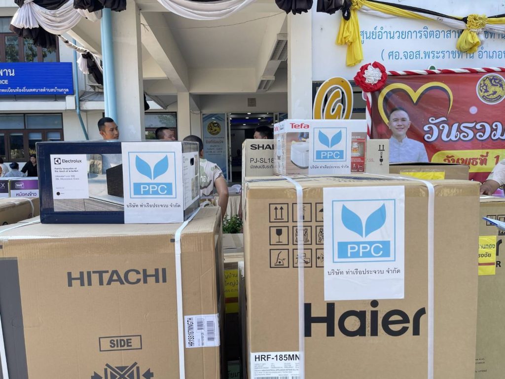 บริษัท ท่าเรือประจวบ จำกัด (PPC) แสดงพลังน้ำใจภาคเอกชน ร่วมสนับสนุนกิจกรรม “วันรวมน้ำใจ ให้กาชาดจังหวัดประจวบคีรีขันธ์ ประจำปี 2569” ณ ที่ว่าการอำเภอบางสะพาน โดยมอบของรางวัลเครื่องใช้ไฟฟ้าจำนวนมาก อาทิ ตู้เย็น เครื่องซักผ้า และอุปกรณ์อำนวยความสะดวกในครัวเรือน เพื่อใช้เป็นรางวัลในการออกร้านกาชาด สร้างสีสันและดึงดูดประชาชนเข้าร่วมงานอย่างคึกคัก