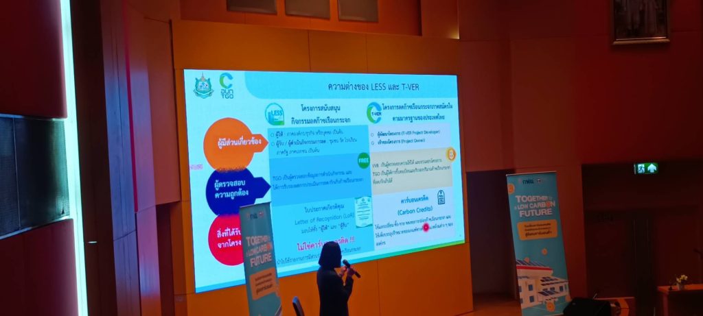 นอกจากนี้ยังมีการบรรยายพิเศษในหัวข้อ “กลไกคาร์บอนเครดิตภาคสมัครใจของประเทศไทย” โดย ดร.ปราณี หนูทองแก้ว ผจก.สำนักรับรองคาร์บอนเครดิตฯ( อบก.)เพื่อให้ความรู้เกี่ยวกับแนวทางการเปลี่ยนกิจกรรมลดก๊าซเรือนกระจกให้กลายเป็นสินทรัพย์ที่จับต้องได้และมีมูลค่าในตลาดคาร์บอน