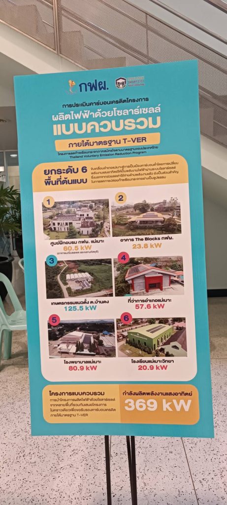 ภายในงานมีกิจกรรมการนำเสนอความสำเร็จของโครงการคาร์บอนเครดิตแบบควบรวม (Bundling Project) ซึ่งเป็นการรวบรวมโครงการผลิตไฟฟ้าจากโซลาร์เซลล์ขนาดเล็กในพื้นที่ อ.แม่เมาะ 6 แห่ง ได้แก่ อาคารศูนย์ฝึกอบรม กฟผ.แม่เมาะ อาคาร The Blocks กฟผ. รพ.แม่เมาะ ที่ว่าการอำเภอแม่เมาะ รร.แม่เมาะวิทยา และ บ.นิคมชุมชนเกษตร จำกัด โดยมีกำลังการผลิตรวมทั้งสิ้น 369 กิโลวัตต์ จากการดำเนินงาน 10 เดือน สามารถลดก๊าซเรือนกระจกได้ 99 ตันคาร์บอนไดออกไซด์เทียบเท่า และได้รับการรับรองปริมาณก๊าซเรือนกระจกจาก อบก.แล้ว