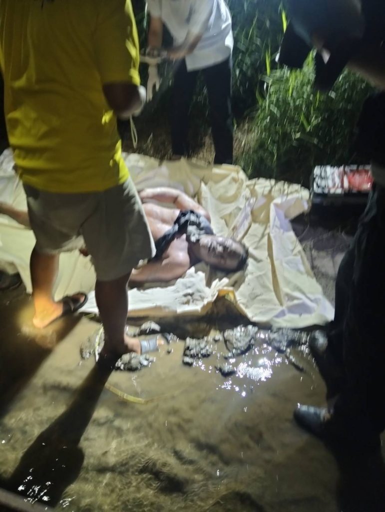 เมื่อไปถึงที่เกิดเหตุ พบศพชายอายุประมาณ 40 ปี สวมกางเกงวอร์มขาสั้นสีแดง ไม่สวมเสื้อ นอนคว่ำหน้าจมอยู่ริมฝั่งแม่น้ำปาย ใกล้กับเรือบรรทุกทรายที่จอดเที่ยบท่าไว้ ตรวจสอบตามร่างกายไม่พบมีรอยบาดแผลจากการถูกทำร้ายแต่อย่างใด ขณะเดียวกันชาวบ้านระแวกใกล้เคียงไม่มีใครรู้จักว่าผู้ตายเป็นใครมาจากไหน และในตัวไม่มีหลักฐานยืนยันตัวบุคคลแต่อย่างใด เบื้องต้นให้เจ้าหน้าที่กู้ภัยนำศพไปเก็บไว้ที่ รพ.ศรีสังวาลแม่ฮ่องสอน เพื่อประกาศติดตามหาญาติต่อไป