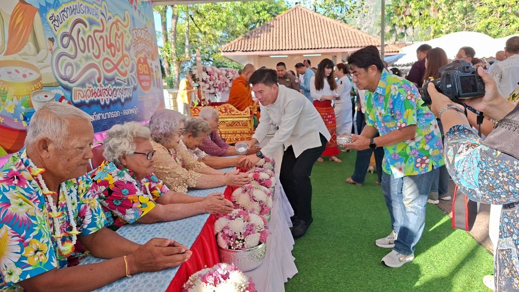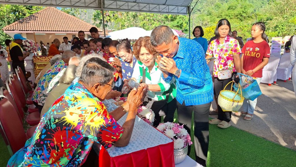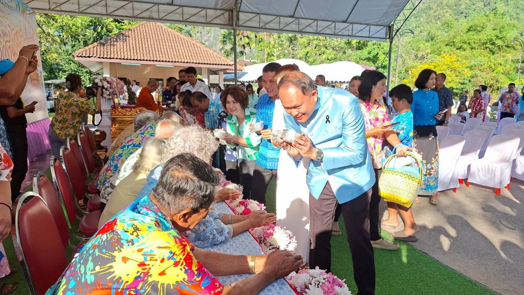 ผู้ว่าเปิดพิธีทำบุญตักบาตร รดน้ำผู้สูงอายุ