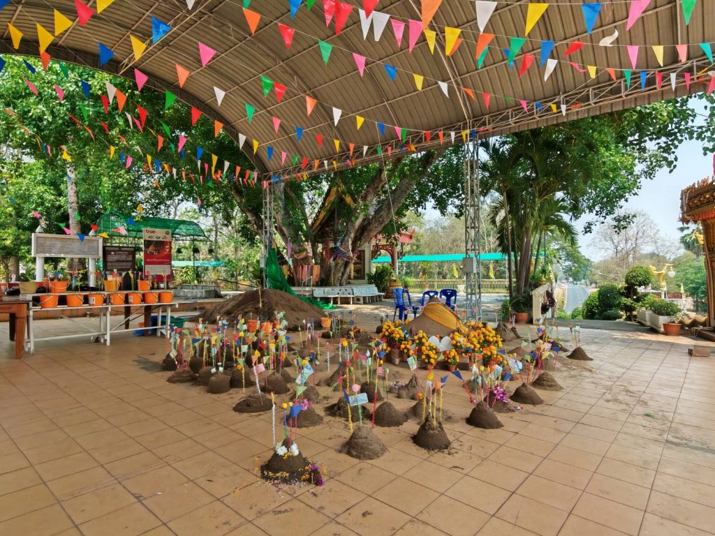 ทั้งนี้ การก่อพระเจดีย์ทรายเชื่อกันว่าเป็นการนำทรายกลับคืนสู่พระอาราม อันเป็นการสร้างกุศล และมีอานิสงส์ช่วยเสริมความเจริญรุ่งเรือง ความร่มเย็นเป็นสุขแก่ผู้ร่วมกิจกรรม ตลอดจนเป็นการสร้างความสามัคคีในชุมชน