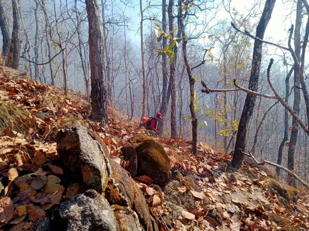 และช่วงบ่าย เจ้าหน้าที่ฯ ได้รับแจ้งจากผู้ใหญ่บ้าน หมู่ที่ ๖ บ้านผาสำราญ ตำบลเมืองแปง อำเภอปาย จังหวัดแม่ฮ่องสอน พบกลุ่มควันขึ้นบริเวณป่าห้วยผักห้า จึงได้นำกำลังเข้าพื้นที่ร่วมกับ ผู้ใหญ่บ้านและชาวบ้านบ้าน พบไฟลุกไหม้เป็นแนวยาวบนสันดอย จึงได้ช่วยกันเข้าควบคุมไฟ สามารถควบคุมไฟได้บางส่วน เนื่องจากไฟขยายเป็นวงกว้าง เจ้าหน้าที่จึงได้นำอากาศยานไร้คนขับ(Drone) ขึ้นบินสำรวจพบแนวไฟเป็นวงกว้างอยู่ในพื้นที่สูงชันยากต่อการเข้าควบคุม จึงได้แบ่งกำลังทำแนวกันไฟป้องกันการลุกลามของไฟป่า พื้นที่ความเสียหายยังไม่สามารถประเมินได้ ไม่ทราบสาเหตุการเกิดไฟ