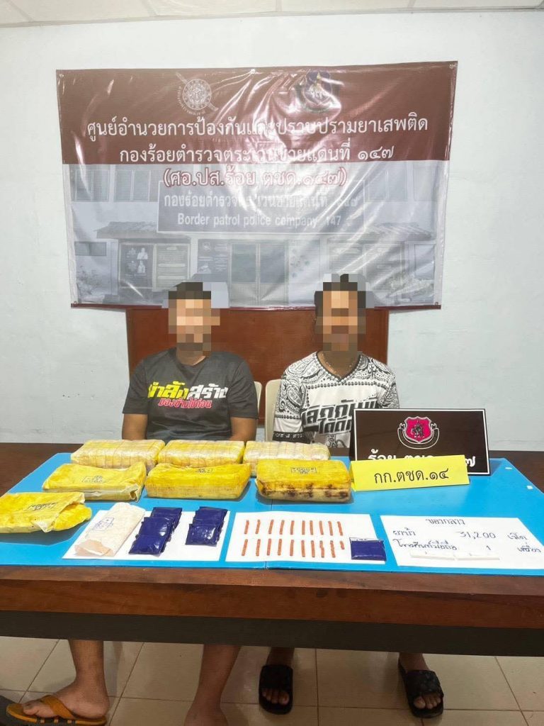 บุกรวบ “คู่หูทองมงคล” ฝ่ายปกครองบางสะพานล่อซื้อ ขยายผลยึดยาบ้าเฉียด 3.2 หมื่นเม็ด ซุกกอหญ้าริมสระ