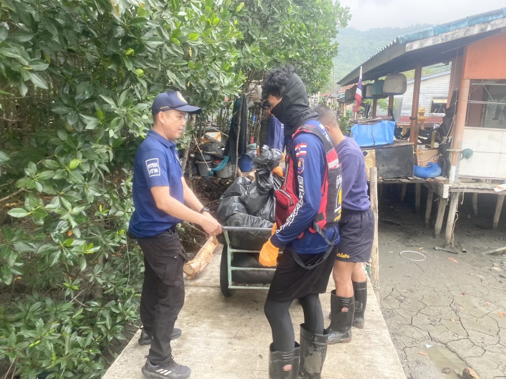 [ตราด] – เมื่อเวลา 17.00 น. วันที่ 18 เมษายน 2569 นาวาเอก วุฒิฉัตร ราชรัตนารักษ์ รอง ผอ.ศรชล.ตราด พร้อมด้วย นางสาวกิจปภา ประสิทธิเวช นายกเทศมนตรีตำบลหาดเล็ก ได้สนับสนุนอุปกรณ์การเก็บร่วมกับ อบต.คลองใหญ่ พร้อมศูนย์อนุรักษ์ทรัพยากรป่าชายเลนที่ ๑ ด่านเก่า ตราด นำกำลังเจ้าหน้าที่บูรณาการร่วมกับ หน่วยเฉพาะกิจนาวิกโยธินที่ 182, กู้ภัยสว่างบุญช่วยเหลือฯ และหน่วยงานลงพื้นที่หมู่ 1 บ้านคลองมะขาม เพื่อเร่งจัดเก็บซากเครื่องในไก่เน่าเสียที่ลอยมาติดแนวป่าชายเลน