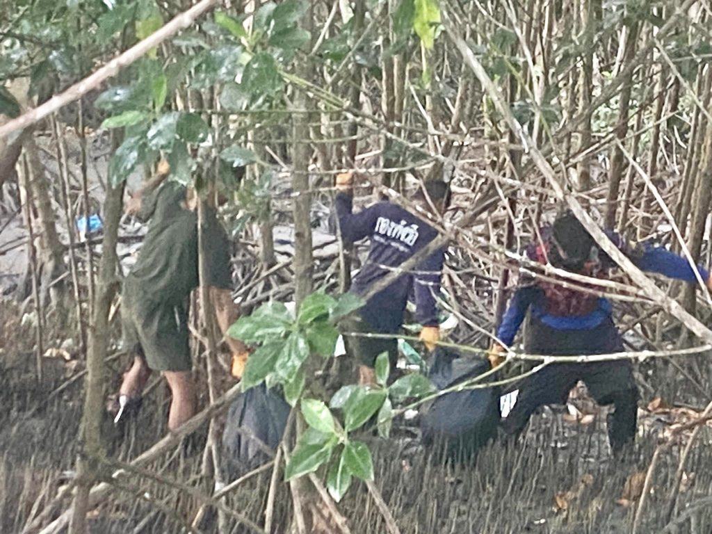 “ตราด ระดมพล! ศรชล. สนธิกำลังนับหลายสิบนาย บุกป่าชายเลนเก็บซากเครื่องในไก่เน่าเกือบ 2 ตัน หลังเรือลักลอบล่ม”