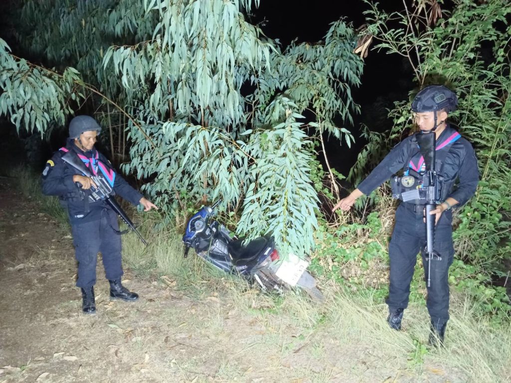 อย่างไรก็ตาม ทันทีที่เจ้าหน้าที่แสดงตัวเรียกตรวจ คนร้ายได้ทิ้งรถจักรยานยนต์แล้ววิ่งหลบหนีข้ามแดนไปยังกัมพูชาอย่างรวดเร็ว อาศัยความมืดและความชำนาญในพื้นที่หลบหนีไปได้