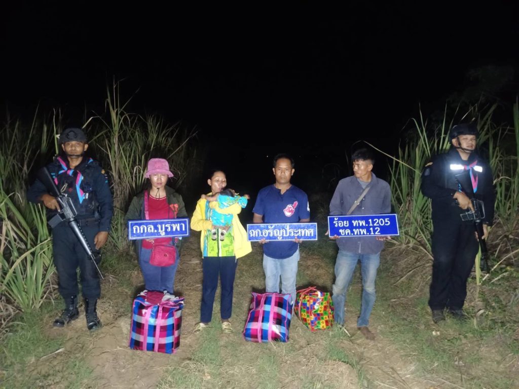 ระหว่างปฏิบัติหน้าที่ เจ้าหน้าที่ตรวจพบกลุ่มบุคคลต้องสงสัยเดินเท้าลัดเลาะผ่านช่องทางธรรมชาติจากฝั่งประเทศกัมพูชาเข้าสู่ประเทศไทย จึงเข้าทำการตรวจสอบ พบเป็นชาวกัมพูชาลักลอบเข้าเมืองโดยผิดกฎหมายจำนวน 5 คน ประกอบด้วยชาย 2 คน หญิง 2 คน และเด็กชายวัย 3 เดือน 1 คน โดยทั้งหมดไม่สามารถแสดงเอกสารประจำตัวได้