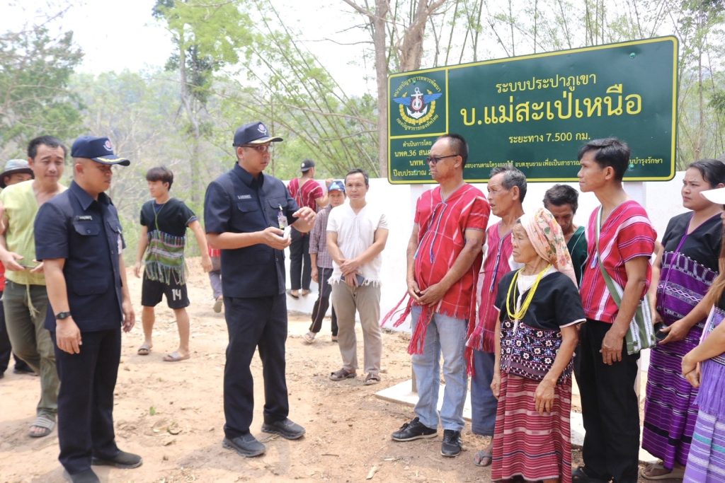 จากนั้นผู้บังคับหน่วยพัฒนาการเคลื่อนที่ 36 สำนักงานพัฒนาภาค 3 หน่วยบัญชาการทหารพัฒนา กองบัญชาการกองทัพไทย (ผบ.นพค.36 สนภ.3 นทพ.) ได้เดินทางไปส่งมอบโครงการ งานซ่อมทางผิวจราจรลูกรัง กว้าง 5 ม. ไม่มีไหล่ทาง ระยะทาง 3.000 กม.ให้ประชาชน บ.แม่สุริน ม.3 ต.ขุนยวม อ.ขุนยวม เพื่อให้ประชาชนได้ใช้เส้นทางในการสัญจรไปมาได้อย่างสะดวก เป็นการช่วยเหลือและพัฒนาคุณภาพชีวิตของประชาชน จำนวน 164 ครัวเรือน ประชากร 442 คน และส่งมอบโครงการงานสร้างระบบประปาภูเขา และก่อสร้างถังเก็บน้ำคอนกรีตเสริมเหล็ก ขนาด 100 ลบ.ม.ให้ประชาชน บ.แม่สะเป่เหนือ ม.6 ต.ขุนยวม อ.ขุนยวม เพื่อลดปัญหาการขาดแคลนน้ำอุปโภคบริโภคของประชาชนในห้วงหน้าแล้ง มีราษฎรได้รับผลประโยชน์ จำนวน 182 คน 37 ครัวเรือน อีกทั้งเป็นการสร้างความสัมพันธ์อันดีระหว่างหน่วยงานราชการ กับประชาชนในพื้นที่อีกด้วย