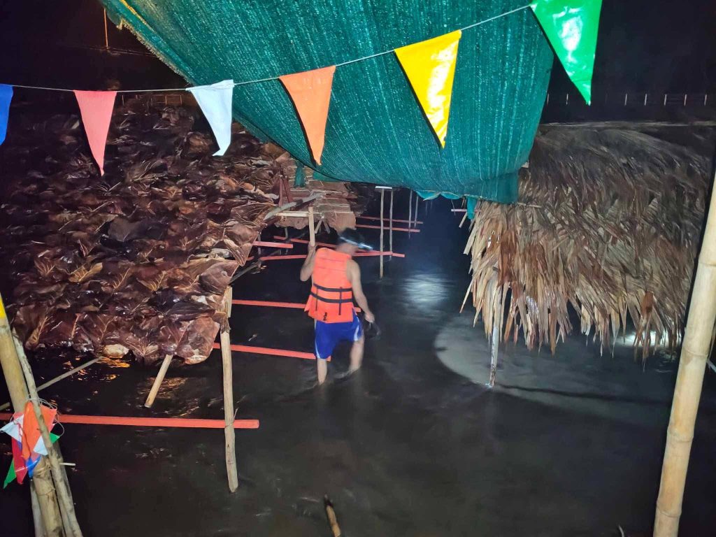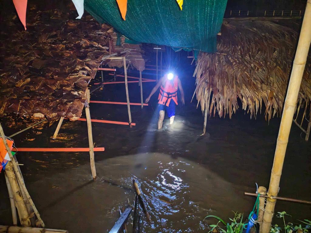 ทางด้านเจ้าของซุ้มช่วยกัน ดันต้นไม้กิ่งไม้ ไม่ให้ลอยมากระแทกกับซุ้มและช่วยกันมัดซุ้มติดกันเพื่อไม่ให้กระแสน้ำพัดพาซุ้มลอยไป ล่าสุดในวันนี้ ( 27 เม.ย. 69 ) เจ้าของซุ้มหลายแห่ง ทยอยรื้อถอนซุ้มจากแม่น้ำปายแล้ว เดิมได้กำหนดจะขายวันนี้เป็นวันสุดท้าย และจะรื้อถอนในวันพรุ่งนี้