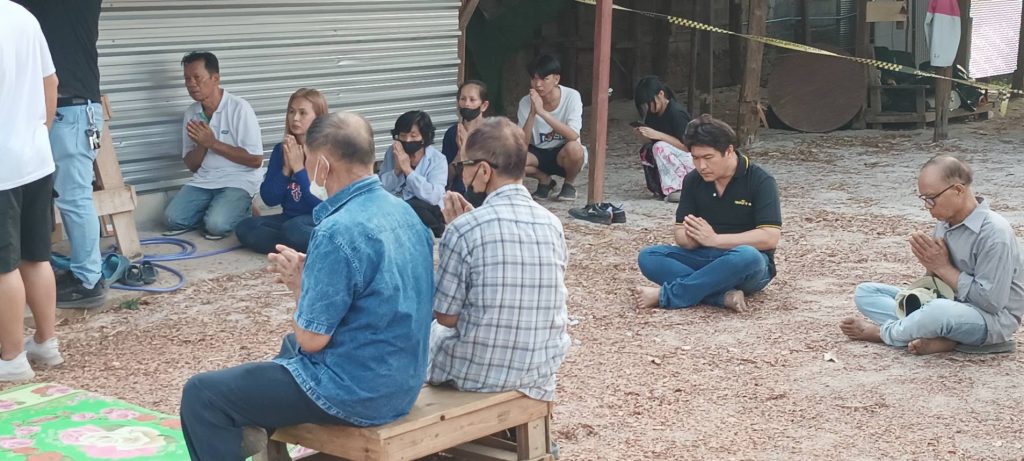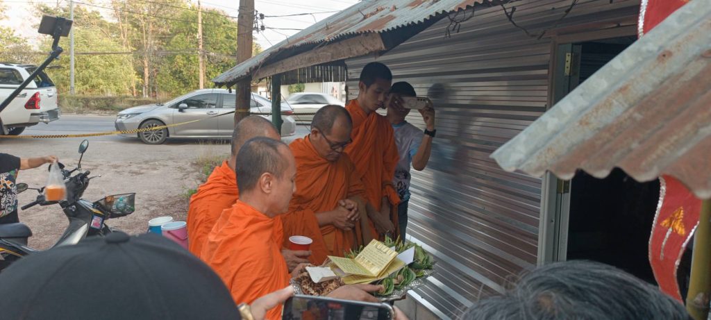 ต่อมาในช่วงบ่าย ตำรวจ สภ.เขลางค์นครแจ้งว่า จะมีการนำตัวผู้ต้องหาไปทำแผนประกอบคำรับสารภาพในที่เกิดเหตุทำให้ชาวบ้านที่ทราบข่าวตลอดจนญาติพี่น้องของผู้ตายที่ อ.ห้างฉัตร พากันมารอดูหน้าจำนวนมากต่อมาผู้ต้องหาขอใช้สิทธิ์ไม่ทำแผนประกอบฯทำให้ชาวบ้านต้องรอเก้อ อย่างไรก็ตามวันเดียวกันบรรดาญาติพี่น้องผู้ตายชาวบ้านนางแล อ.ห้างฉัตร นิมนต์พระสงฆ์จำนวน 4 รูป โดยมีพระครูอัมพวันสันติวัฒน์ รอง จอ.ห้างฉัตร เจ้าอาวาสวัดม่วงชุม นำพระสงฆ์ประกอบพิธีเปิดห้องพักที่ยังมีสิ่งของเครื่องใช้เสื้อผ้าและกองเลือดของผู้ตายอยู่ในห้องนอนเพื่อสวดถอน เชื่อว่าเป็นการเชิญดวงวิญญาณนายชัยวุฒิเพื่อกลับบ้านนางแล บ้านเกิด ที่ญาติพี่น้องและครอบครัวรอการทำบุญอุทิศส่วนกุศลไปให้ บรรยากาศเป็นไปด้วยความโศกเศร้า