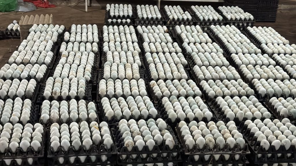 ต่อมา หญิงอายุ 48 ปี แสดงตัวเป็นเจ้าของบ้านและโกดัง ยินยอมให้ตรวจค้น โดยผลการตรวจค้นพบของกลางรวม 22 รายการ ประกอบด้วยไข่เป็ดฟักตัวกว่า 14,000 ฟอง รวมถึงเครื่องดื่มนำเข้า เครื่องสำอาง สมุนไพร อาหารแห้ง และสินค้าเบ็ดเตล็ดอื่น ๆ อีกจำนวนมาก รวมของกลางทั้งหมดกว่า 20,000 ชิ้น พร้อมรถยนต์ตู้ที่ใช้ในการขนส่ง